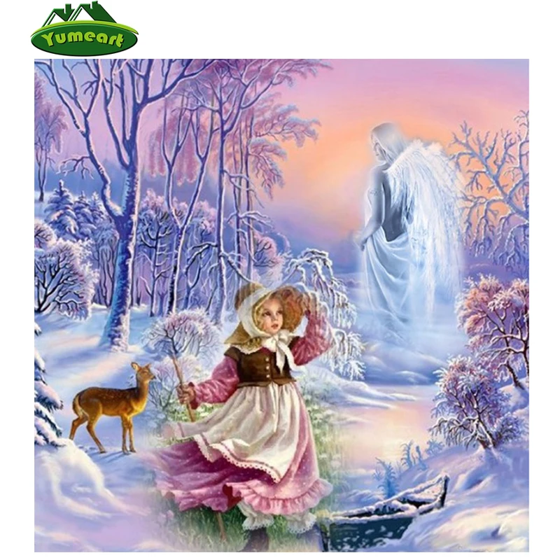 Musim Dingin Salju Pemandangan Malaikat Dan Hewan 5d Diy Berlian