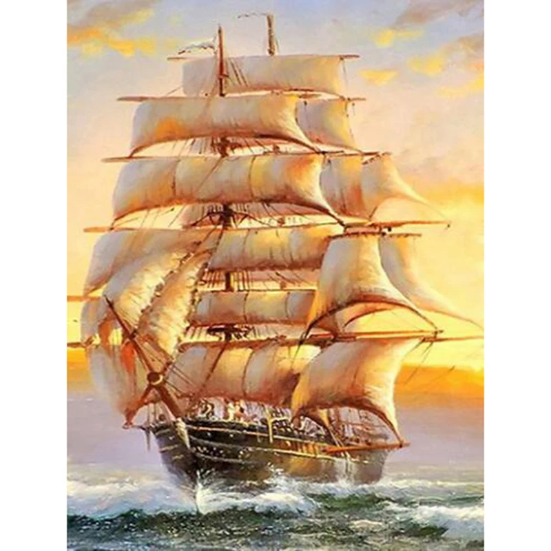 Kapal Perahu Layar Diy Kerajinan Bordir Berlian Lukisan Cross