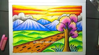 Cara Menggambar Pemandangan Alam Yang Mudah Dengan Crayon